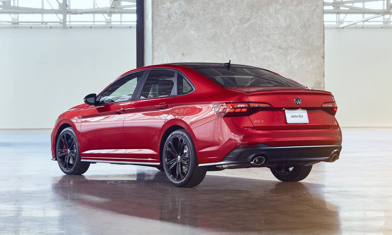 No esportivo GLI, os cromados da grade são substituídos por moldura externa na cor preta e friso duplo central em vermelho. O tom que remete à esportividade também aparece nas molduras dos faróis de neblina, enquanto retrovisores e as novas rodas de 18” vêm na cor preta. Na traseira, o para-choque ganhou maior área na cor preta e saídas de escapamento ligeiramente ampliadas.