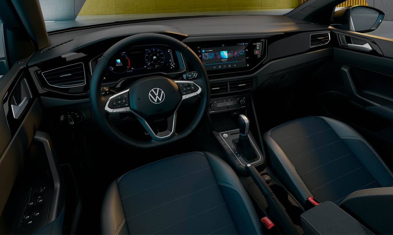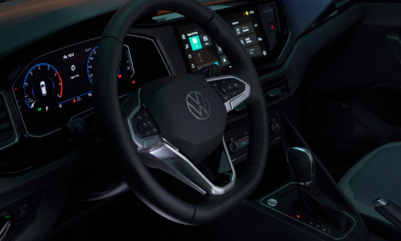 Do lado de dentro, o Nivus adotará o volante do Golf de oitava geração (usado também no T-Cross Europeu) e uma nova central multimídia de 10 polegadas, que terá loja de aplicativos nativa e espelhamento sem fio. O modelo também aposta em revestimento do teto e colunas na cor preta, além de padronagem exclusiva para os bancos.