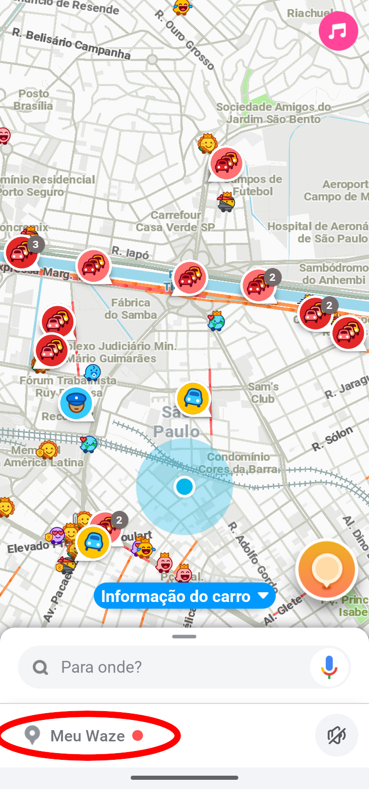 Caminho: Meu Waze > Configurações > Detalhes do veículo > Tipo de veículo