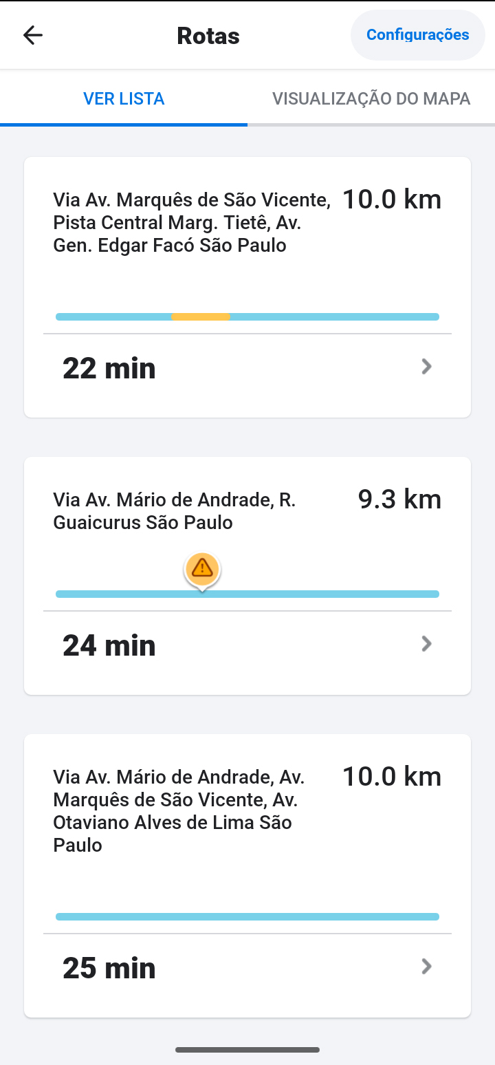 Após concluída a configuração, o aplicativo mostrará um alerta ao escolher uma rota que passe pelo rodízio.