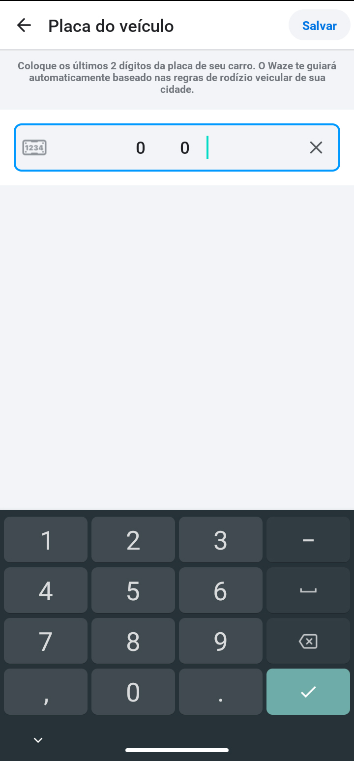 Para os esquecidos de plantão, há uma opção no waze para colocar a placa do veículo e receber um alerta caso a rota passe por alguma rua ou avenida dentro da área de rodízio. Para adicionar a placa no Waze, é necessário clicar em “Meu Waze”, em seguida na engrenagem de configuração, escolher a opção “Detalhes do Veículo”, clicar em “Placa do veículo”, adicionar os dois últimos números da placa e salvar.